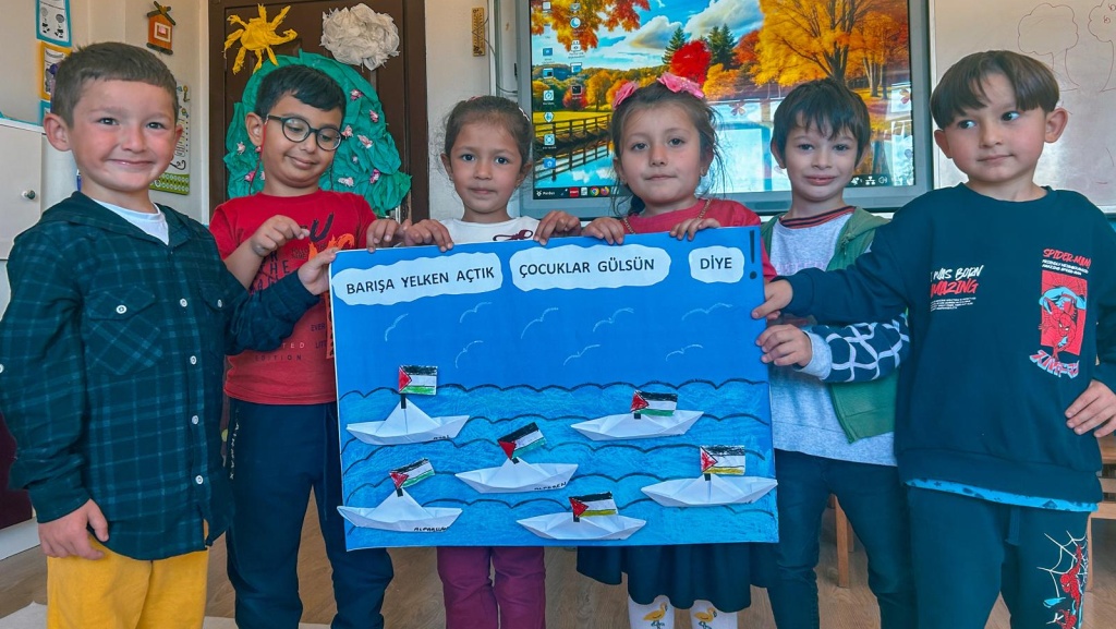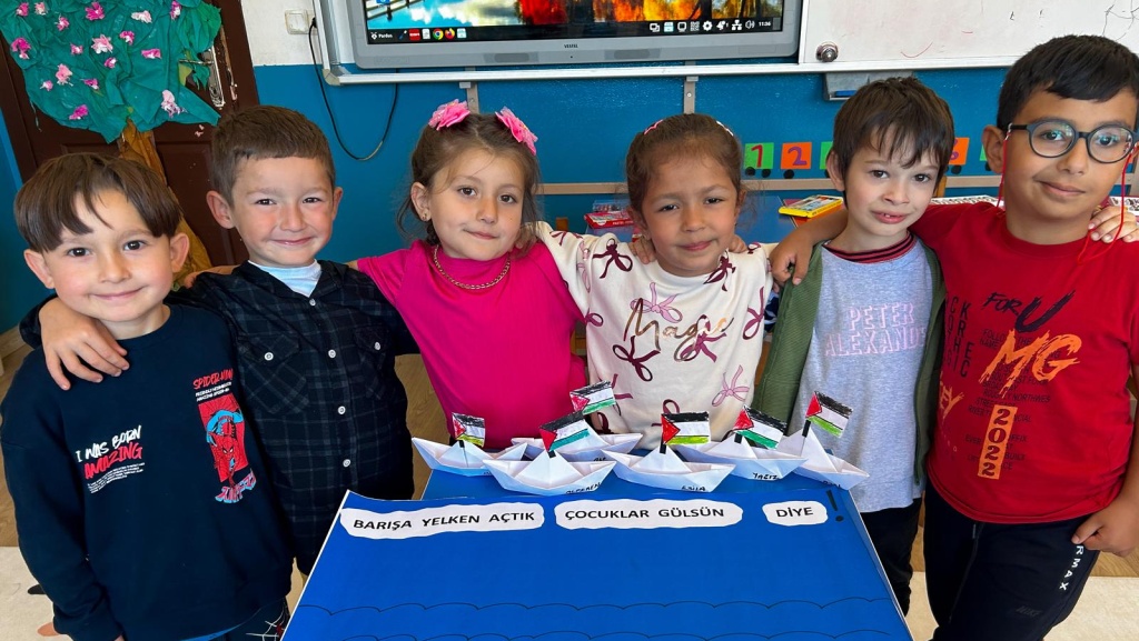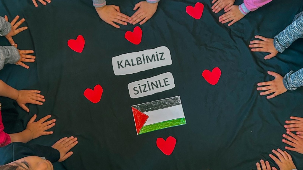 Öğrencilerimizi akademik donanımın yanında barış, demokrasi ve evrensel insan haklarının gerektirdiği ahlâkî sorumluluk bilinciyle yetiştirmektir. İnsan hakları ihlallerini, savaşı ve hukuksuzluğu durdurma çabasında eğitimcilerin sorumluluğu vardır. Bu nedenle eğitim politikaları, barışın, demokrasinin ve insan haklarının egemen olduğu bir dünya hedefini merkezine koymalıdır. Bu kapsamda, Türkiye Yüzyılı Maarif Modeli temel hak ve hürriyetler perspektifinde koşulsuz insan haklarına saygı, küresel barış ve dünyaya saygı ilkelerini merkeze konumlandırır.07/10/2025 Salı günü öğrencilerimizle beraber Filistin Farkındalık Etkinliği gerçekleştirdik.