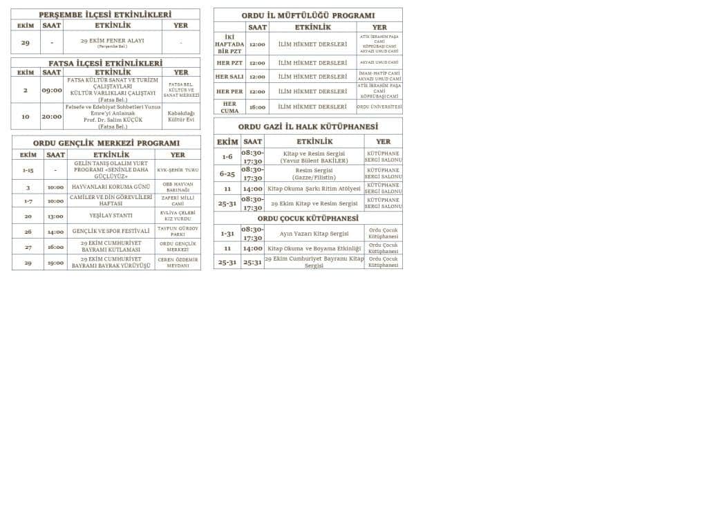 Kültürel Etkinlik Takvimi Ekim ayı etkinlikleri.